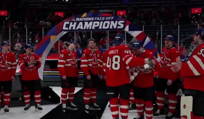 So while it’s tempting to write of the Four Nations Face-Off as an abridged competition that barely means anything, the result is at least consistent with recent history. Canada won, and they deserved to win, and good for them. Hooray for Canada, and Thomas Harley! “No excuses” is the Dallas Stars philosophy, and we might as well hold to that here, too.