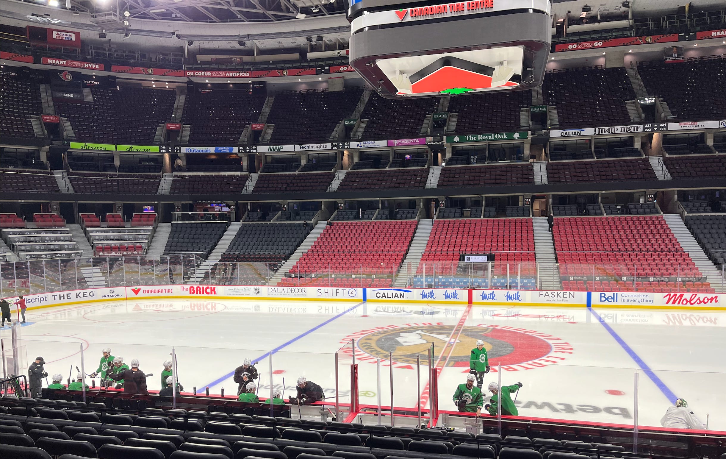 Things are a little different on the Stars’ second trip of the year to Canada, where they’ll face the Ottawa Senators tonight on Remembrance Day. That solemn day is observed even during the middle of a hockey practice, by the way: The Senators players on the rink at 11:00 this morning all paused for two minutes of silence, as per tradition.