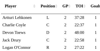 When it comes to injured players re-entering the lineup, you can see how the initial boost from Landeskog could turn the other way if his line isn’t effective early on. The Avalanche haven’t gotten nearly enough from their middle-six group so far—far more from their fourth line, in fact, which has three goals in two games, or four if you count Coyle’s goal in Game 1, which came from fourth-liners Parker Kelly and Jack Drury.