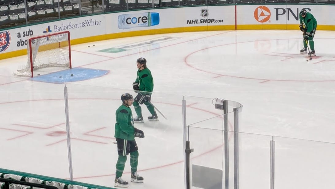 Oh right, Jason Robertson was on the ice (see above photo) today for his first morning skate since being injury over two weeks ago, which was a mild surprise to those of us watching.