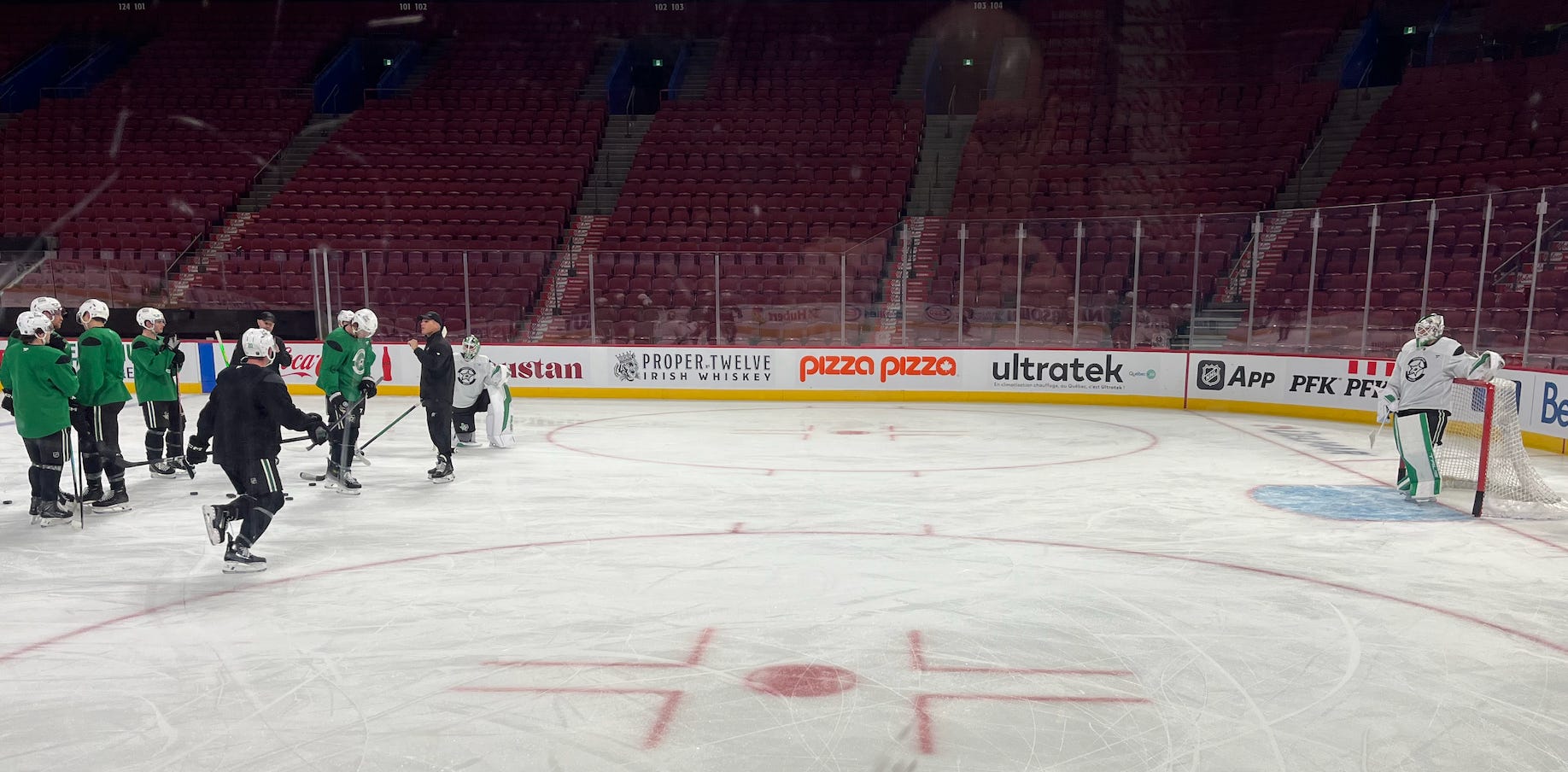 Two skaters who were out there pretty early were Justin Hryckowian and Mavrik Bourque, who are playing in a building that’s pretty special for the two Québécois Stars playrers. Both will have a lot of family in attendance, with Bourque saying today that he believes around 100 of his family and friends will be on hand. And you can be Hryckowian’s number of in-person guests won’t be too far behind that, since it’s the latter’s first career NHL game in his home province.
