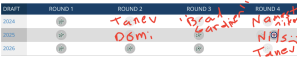 This year’s 2nd-rounder and the 2026 4th-rounder both were shipped out for Chris Tanev (to Calgary and New Jersey to make the cap room work).