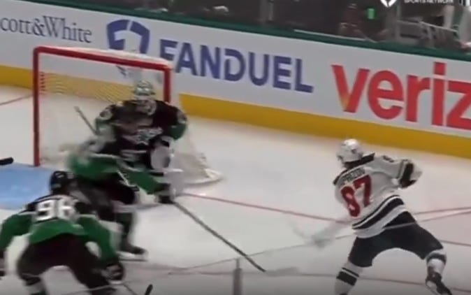 Esa Lindell would get whistled for what he viewed as an odd tripping penalty (which it was—his stick wound up wedged between two Wild players, but wouldn’t have tripped either one on their own), and another Eriksson Ek power play goal would salt the game away at 5-1 when he got a second low-to-doorstep pass that he put inside the near post for a goal that nobody on earth cares about analyzing, but that your seat neighbor probably used as evidence for why Jake Oettinger should be traded for like, Carlos Baerga or someone.