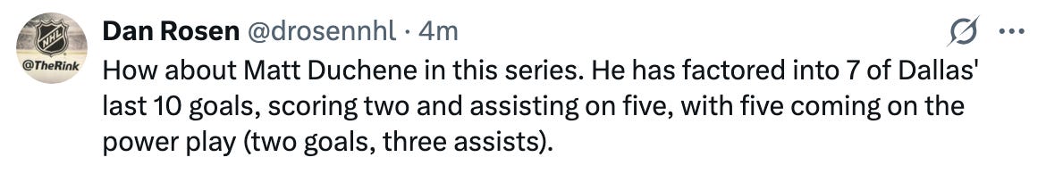 Matt Duchene has had himself the best playoff series of his time in Dallas, and particularly on the power play: